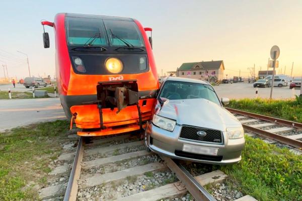 Выезд автомобиля на пути перед приближающимся поездом стал причиной ДТП на переезде в Сахалинской области