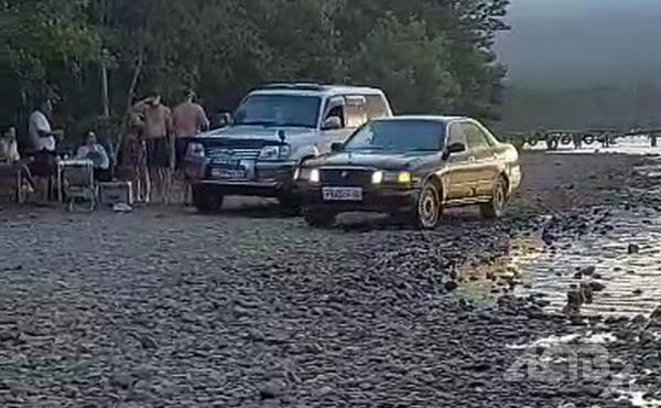 На Сахалине автомобилист прокатился по мелководью, где резвились дети