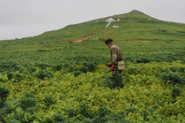Напомним, что поисковые работы на острове ведутся с 1 июля. За время работы двух заездов поисковиков обнаружены останки уже пяти бойцов, погибших в Курильской десантной операции августа 1945 года. Работы групп будут продолжены, команда поисковиков уже приступает к обследованию соседних траншей у высоты Северная.