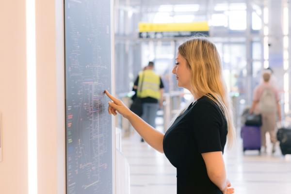 Схема интегрирована с цифровыми сервисами: на ней размещены QR-коды, ведущие на портал с онлайн-расписанием автобусов и в мобильное приложение для планирования поездок. Пассажиры могут отсканировать код и сразу увидеть актуальное время отправления ближайшего автобуса. Рядом с картой работает электронное табло, которое в режиме реального времени обновляет данные о прибытии транспорта. Интервал движения составляет 5-10 минут, а время в пути до центра — около 20 минут. По словам начальника службы развития производственной системы и качества сервиса Елены Старовойт, растёт число пассажиров, выбирающих общественный транспорт, и новая схема делает этот выбор ещё более комфортным.