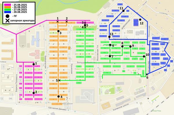 Ул. Монетная 1, 3, 5, 7, 9, 11, 13, 2, 4, 6, 8, 10, 12; Ул. Нежинская 2; пер. Алых Роз 7, 7-А, 9, 9-А, 11, 11-А; ул. Рассветная 10, 10-А; ул. Ближняя 2, 4, 6; ул. Ударная 46, 48, 50.Промывка будет сопряжена с ограничениями водоснабжения. «РВК-Сахалин» просит жителей отнестись к этому с пониманием – это необходимо для производственного процесса. В микрорайон будет обеспечен подвоз воды по графику: