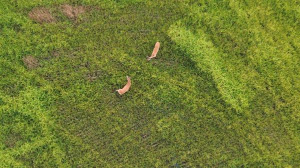 Так, в Ромненском округе квадрокоптер снял встречу двух самцов косуль. Они внимательно оценивали друг друга, но особой агрессии не было — скорее всего, самка, за которую могли бороться, еще не выбрана.