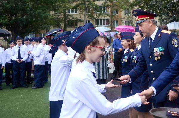 Особенностью праздничной линейки стала церемония принятия в кадеты учеников 7 «А» класса. Школьникам вручили первые погоны и рассказали о программе подготовки. Ученица кадетского класса Ярослава Орлова поделилась, что им предстоит изучать военную подготовку, основы безопасности и защиты Родины. Ученик Макар Виниченко добавил, что стал кадетом чтобы продолжить семейную традицию и выразил гордость за право носить форму.