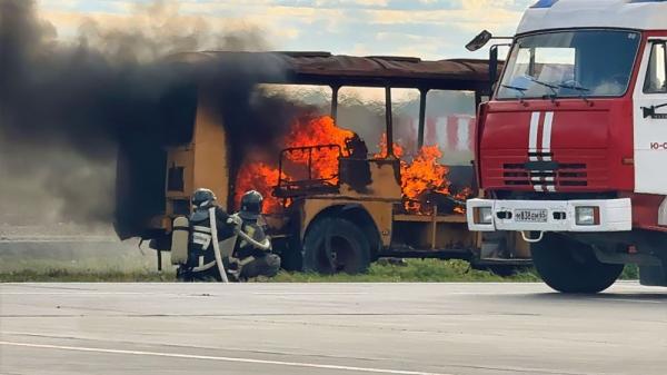 Тренировка состоялась 18 сентября 2025 года. По легенде учений, у воздушного судна во время полета отказал левый двигатель, что привело к возгоранию. Экипаж оперативно передал сигнал о пожаре и запросил разрешение на аварийную посадку.