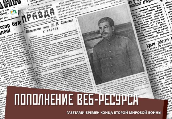 Как сообщили ТИА «Острова» в пресс-службе СахОУНБ, коллекция пополнилась электронными копиями общественно-политических газет «Правда» и «Известия Советов депутатов трудящихся СССР». Эти издания содержат подробную хронику событий заключительного этапа Второй мировой войны на Дальнем Востоке.