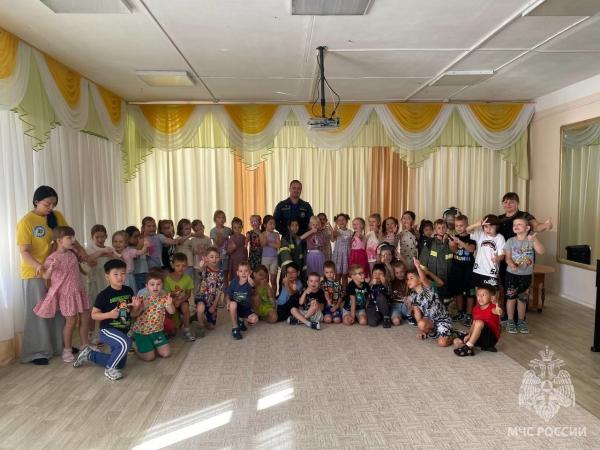 Сначала они напомнили малышам о правилах безопасности. Доступно, в формате мультиков, детям поведали, чем опасны игры с огнем, куда звонить, если стал свидетелем пожара и как себя вести при происшествии.