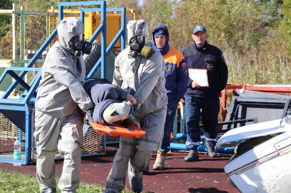 Соревнования были логично поделены на три этапа, два из которых провели сегодня. Первый – эстафета. Сотрудникам необходимо было надеть респиратор, противогаз, костюм химической защиты, взять пробу воздуха для дальнейшего анализа. На втором команды ликвидировали последствия аварии на транспорте с опасными химическими веществами и эвакуировали условных пострадавших.