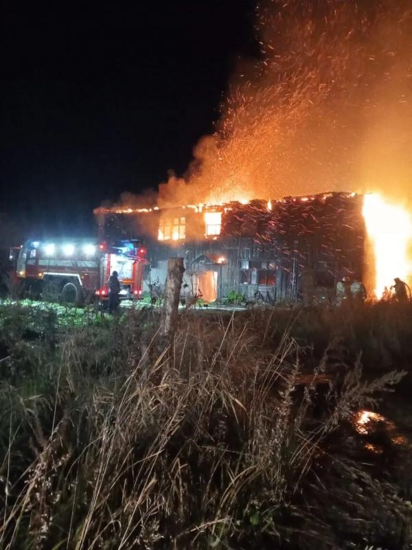 Заброшенный двухэтажный дом в Костромском охватил пожар площадью 450 кв. м