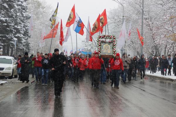В 10.45 колонна с Казанской иконой Божией Матери пройдет от Кафедрального собора Рождества Христова к парку «Россия — моя история». И в 11:00 здесь начнется большой концерт с участием творческих коллективов города, представителей национальных культур.