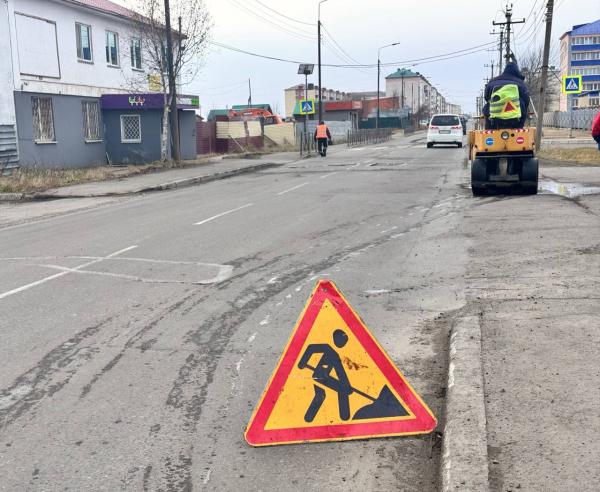 Поронайск готовится к зиме: ямочный ремонт на улицах города