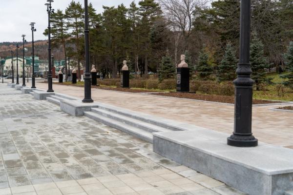 Сегодня ход выполнения работ в рамках инспекционного выезда проверил мэр Южно-Сахалинска Сергей Надсадин. Как доложили специалисты управления дорожного хозяйства, в полном объеме уже выполнена установка бортовых камней и облицовка гранитом ступеней лестниц. Укладка тротуарной плитки находится на завершающем этапе.