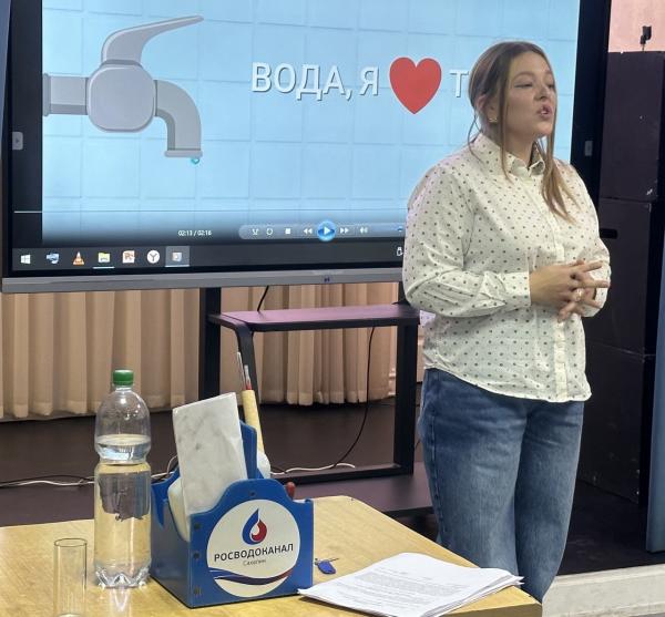 Менеджер по внутренним коммуникациям «РВК-Сахалин» Полина Белоглазова рассказала школьникам о том, что запас питьевой воды на планете ограничен и составляет всего 2,5 процента. А через 25 лет число страдающих от жажды на Земле превысит 3 млрд человек. Поэтому так важно беречь воду, расходовать ее рационально и делать все для сохранения ее экологической безопасности.