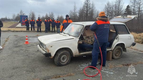 Сотрудники МЧС России провели для школьников Южно‑Сахалинска показательное занятие по ликвидации последствий дорожно‑транспортного происшествия. Мероприятие организовано совместно с Госавтоинспекцией и скорой помощью и приурочено ко ко Дню памяти жертв ДТП.