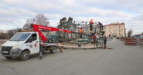 В Южно-Сахалинске начали устанавливать главную новогоднюю елку