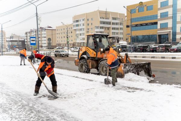 Дорожные службы Южно-Сахалинска расчищают улицы после снегопада