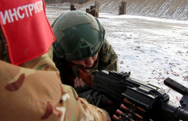 Военнослужащие на Сахалине обучаются стрельбе из пулемёта Калашникова