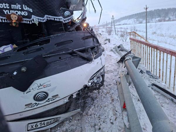 Пассажирский автобус столкнулся с погрузчиком на трассе Южно-Сахалинск - Оха