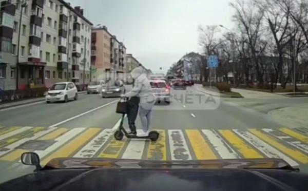 Сахалинку оштрафовали за езду с ребенком на электросамокате по пешеходному переходу